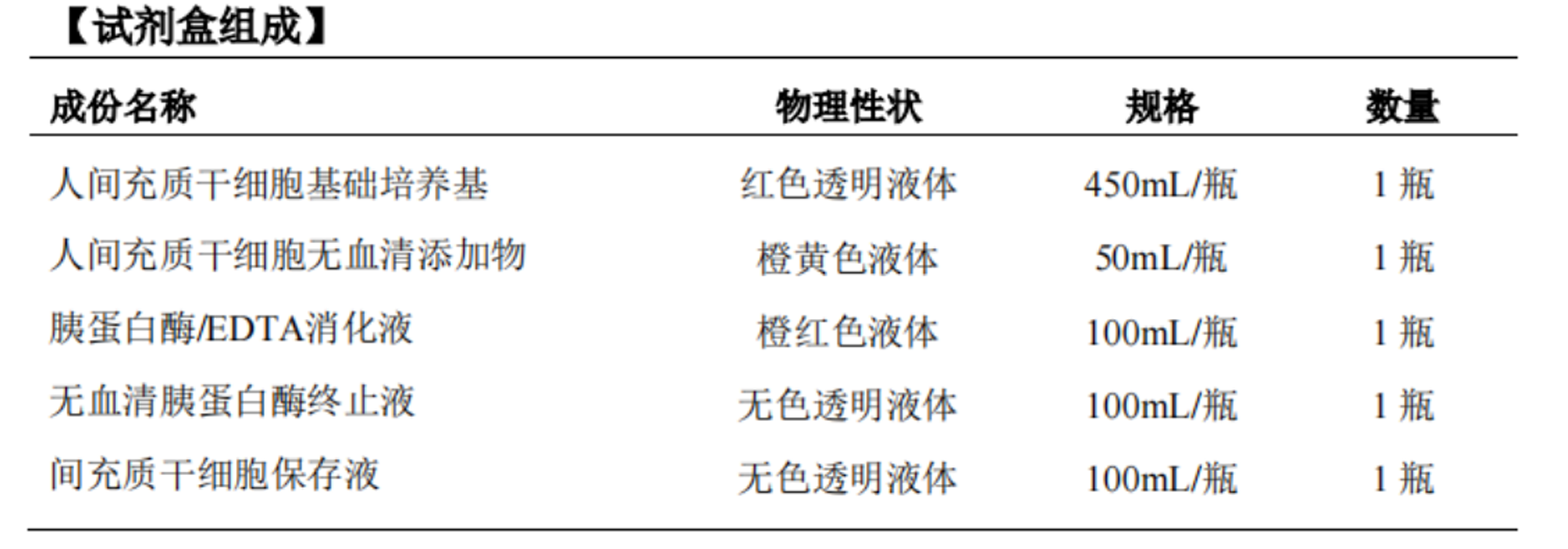 人间充质干细胞无血清培养 套装组成(Specifications)