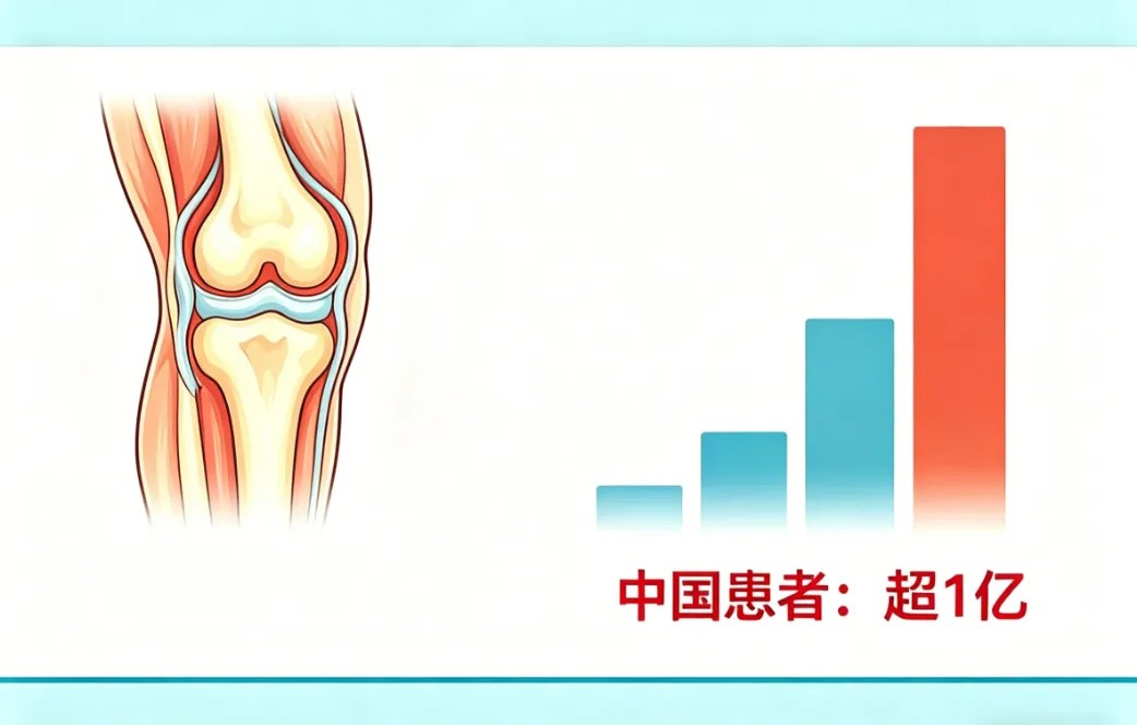 据相关数据统计,我国膝骨关节炎患者超过1亿人。对于这一庞大的患者群体来说,生活往往陷入两难:吃止痛药、打封闭针,只能暂时缓解疼痛,治标不治本,长期吃还伤胃;等到病情严重不得不换关节时,又要面对手术的巨大创伤、高昂的费用以及漫长的康复期。