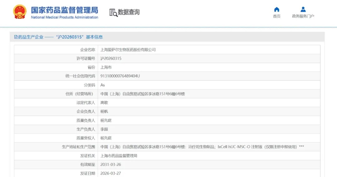 此次2026年全国首张干细胞《药品生产许可证》的落地,标志着干细胞治疗正加速走出实验室、走向临床,切实惠及广大疑难疾病患者,为生物医药产业的高质量发展注入强劲动力。